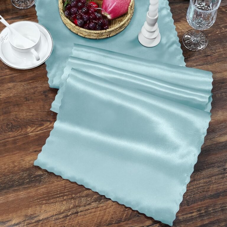 16 Pack Baby Blue Satin Table Runner 12 x 108 Inch Long, Smooth Bright Table Runners Silky Satin Cloth Table Runners for Wedding Dining Graduations…