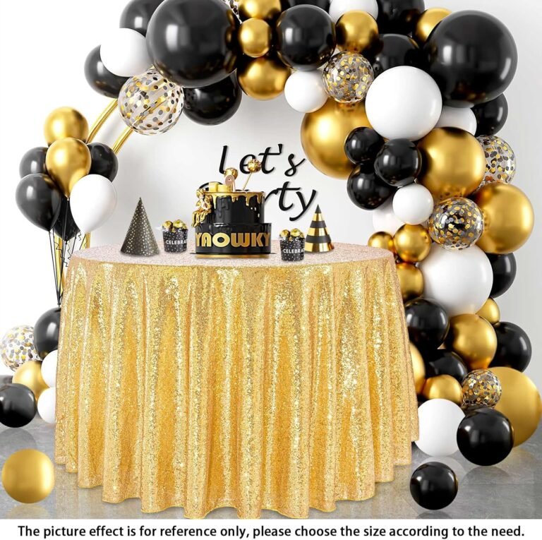 Round Tablecloth Gold Birthday Decorations: 120 Inch